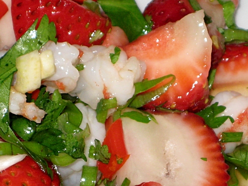 надо закусывать клубникой с чесноком и креветками
