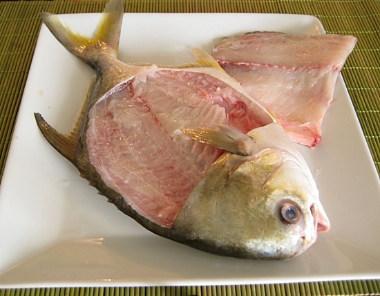 Итак, луфаря чистим. Чешуи у него нет вааще. Спиливаем кусок бочины, кости в утиль. Обливаем парой ложек рисового вина и отправляем минут через 10 с несколькими кусочками имбиря в пароварку на 10-15 минут.