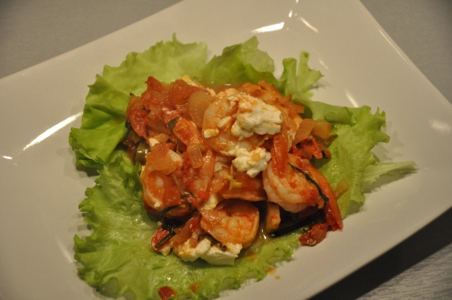 Добавляем разрезанные надвое помидорки и немного пиздатых оливок с косточкой