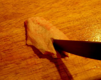 Далее, павернув кусок, абнажаем сами кости, как бы спуская мясо вниз.