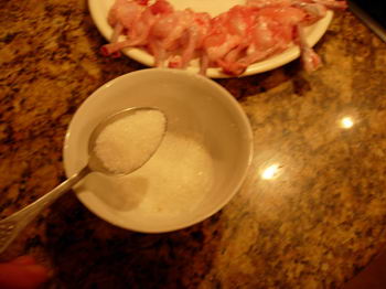 Разделанные крылошки и «плечевые» части этих же крылошек чуть присаливаем и кладем на тарелку, чтоп атдыхали. А сами пока занимаемся пригатавлением соуса.