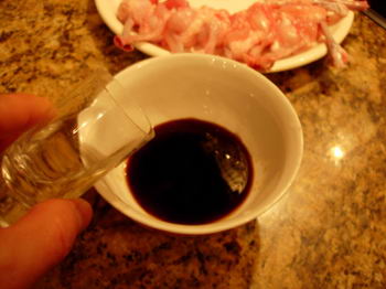 Дабавляем 4 сталовые лошки темнаго соиваго соуса, полрюмки вотки,