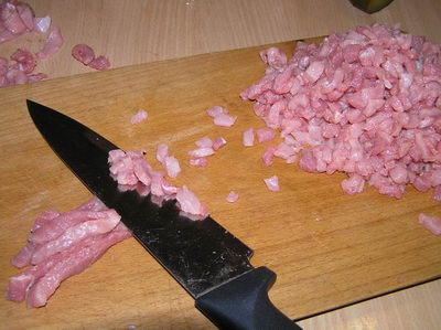 Берем грамм 700 молочной телятинки. Знаешь как выбрать – читай ниже , если нет – то – пахнуть должна травой(расслабляемся, расслабляемся,– не той травой,обычной такой, бесплатной.) Если пахнет мясом – идет нахуй.700-800 грамм хватит на четверых беспезды.