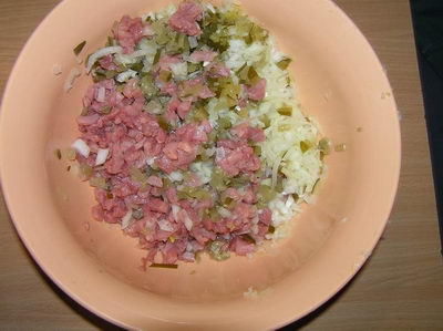 Аффтар нихуйа неффтыкаит чо сырое миасо низзя никохда мареновать! и огурцы лишнии! вообщета басче через мясорупку профернуть с луком и др спецыиами и сразу на хлеп! Такое у нас Фашисты назыфают Цвибельмет! иподают в кабакахх как закусь Вот ТАк Йебена мать!
