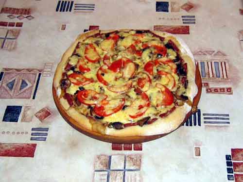 Вариант с яицами - нахуй. Это немецкое изобретение - закрывать пизцу иичной запиканкой. Очень лехко пережеч яица в духоффке, отчиго они преобретают фкус горелой иичницы. Порядок укладки прадуктоф - тожи хуйня. Паэтаму - Пизца - Г/А - датсент калинарново технекума.