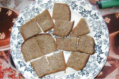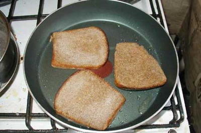 Плита обосратая вся. Тарелка- вопще пиздец, у бабшки спиздил наверное. Скавородки - гавно, на них всё пригорает. Кстати хлеб был плесневый, вот он его и обжаривал специально. Клиёнка - облёвана всё нахуй. Вобщем рецепт хуйня. Чё, ты всех падонков решил отравить??? Хуй тебе!