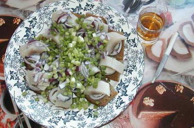 абычная селедка с хлебом.