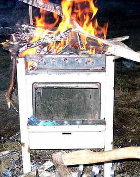 Хорошенько все перемешиваем, закрываем миску крышкой и идем запаливать дрова в мангале. Для готики в качестве мангала я использовал старую газовую плиту. В качестве дров – сухие ивовые сучья (сойдет любое дерево, кроме хвойных пород. С ними шашлыку сразу придет песдец).