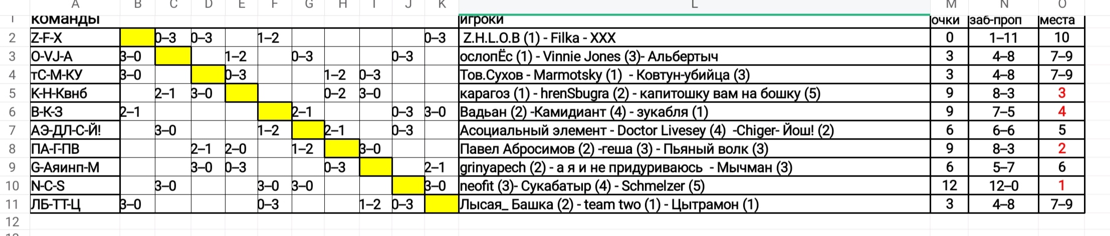 Щетаю, чьто турнирная тоблица выглядит праэльно. Гугугу.
