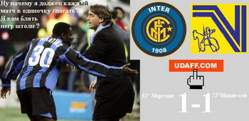 Интер так и не смог выплыть из своей ничейной гавани. Более того стало уже традицией – спасать матчи в концовке встречи. Причом в основном усилиями Мартинза. Справедливости ради следует заметить , что один гол Вьери Интеру не защитали из-за ошибки бакавого судьи узревшего оффсайд. В матче не учавствовал Адриано из-за травмы.