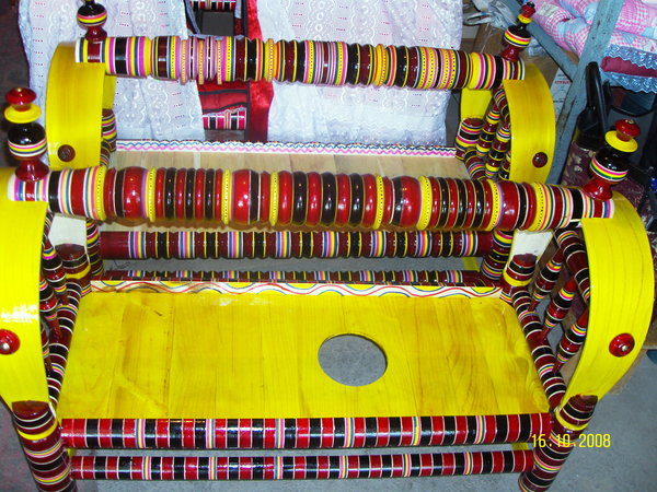 >дык вот, в нее вставляется горшок, а ребенка такими широкими ремнями привязывают к этой люльке.задница, соответсвенно кладется на горшок этот. ну и все, можно на весь день идти хлопок собирать и не бояться, что дите обкакается. поэтому у них у всех затылки приплюснутые