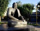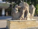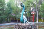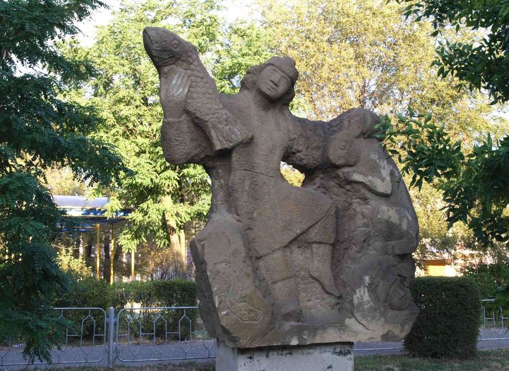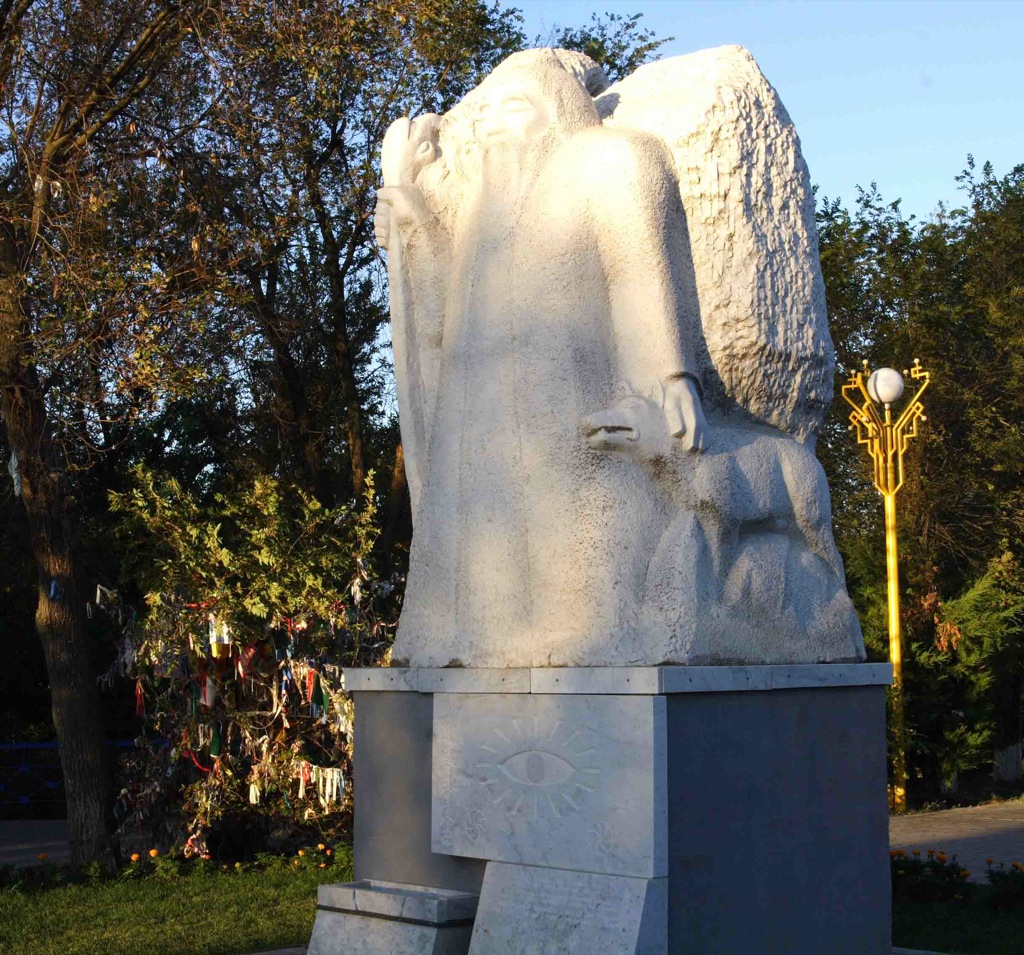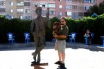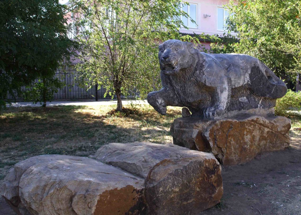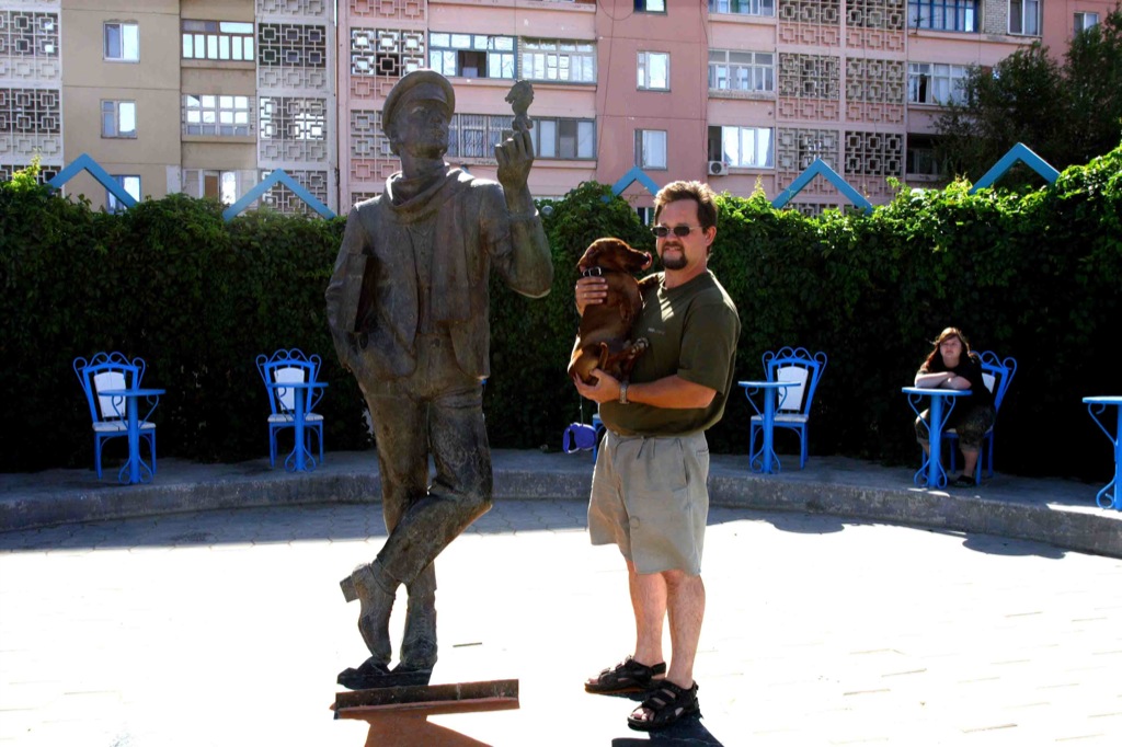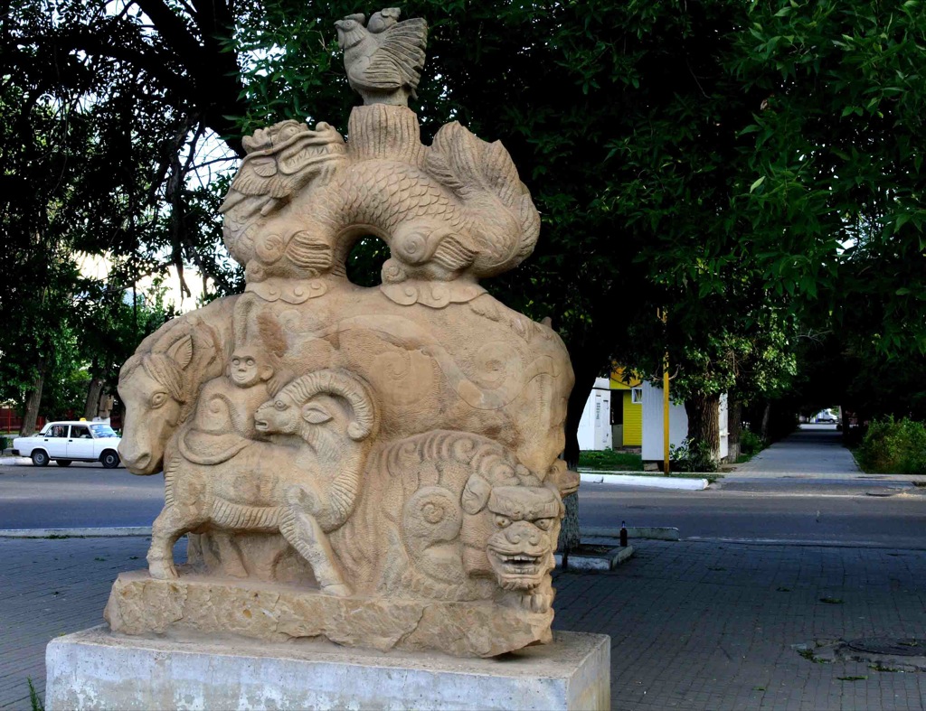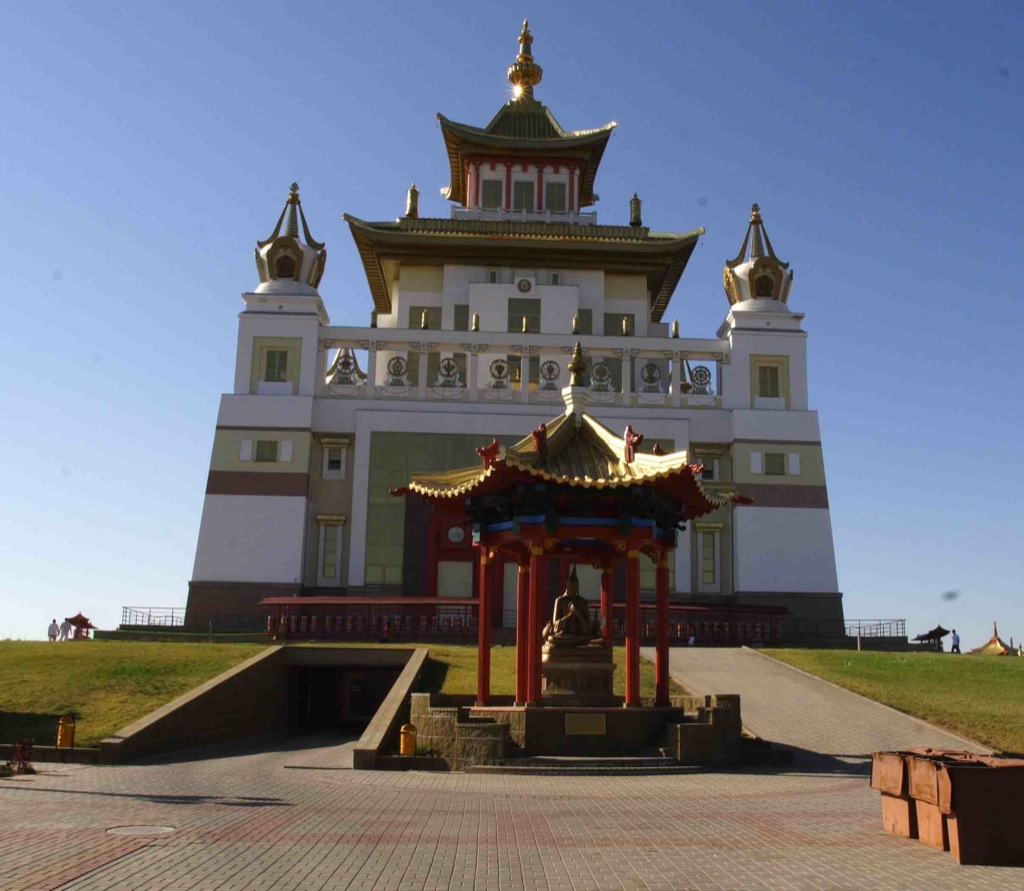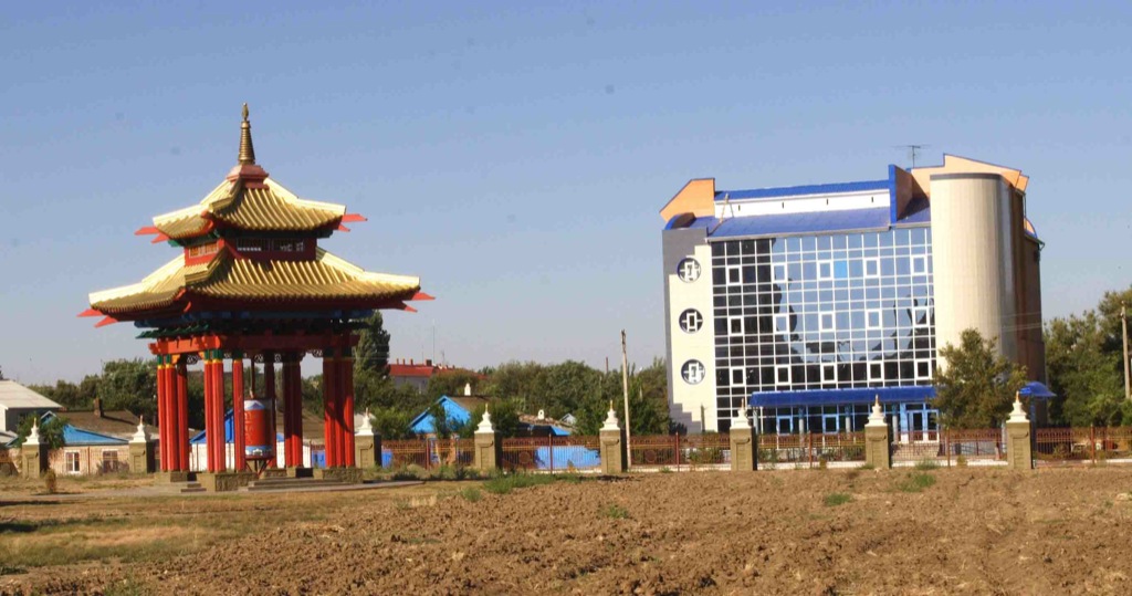 Республика, образована в 1920, в 1942 году вошли немцы, в конце года освобождена, а в 1944 всех калмыков в вагоны и в Сибирь. Республика стала Степным районом Ставропольского края. В 1957 году, реабилитация, тех, кто выжил, расселили обратно. Три города, пять поселков, столица Элиста (Элсен – песок, население 105 тыс.). Мимо не проедешь, здесь и ночевали. В центральную гостиницу пустили с собакой (большая редкость), спасибо. Очаровательный город, очень необычный. Маленький, 5 на 10 км, весь утыкан памятниками. Все таксисты сигналят друг другу. Жители чуть-чуть заторможенные, но очень приветливы. Много молодежи. Вкусно кормят. Ипподром, музей, команда «Уралан». Никаких сувениров, жаль. Центр буддизма в Европе. Бывали здесь Далай-лама, Ричард Гир, Стивен Сигал. По-моему просто блажь Кирсана Николаевича, подобие национальной идеи. Верующих не увидели, главный хурул Сякюсн-Сюме пустой, одни туристы крутят молитвенные барабаны (хурде). По-идее надо загадывать желание, но тибетский, это не олбанский, мало кто знает, может боком выйти, как в анекдоте про Герасима и Золотую рыбку, Я не рискнул. Другая блажь Илюмжинова – Сити-Чесс (шахматный город), Нью-Васюки. Небоьшой, безлюдный микрорайон города, домов двадцать. Между прочим свободная экономическая зона, даже от города. Богатые жители иногда на свадьбы арендуют весь район. На въезде шлагбаум. Забавно, но красиво.