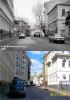 на некоторых фотках очень прикольно видеть, как выросли деревья. ТАкже заметно, как поднялся уровень асфальта, если разница фоток более 50 лет. Вообще, съемки с тех же ракурсов - прикольная вещь.