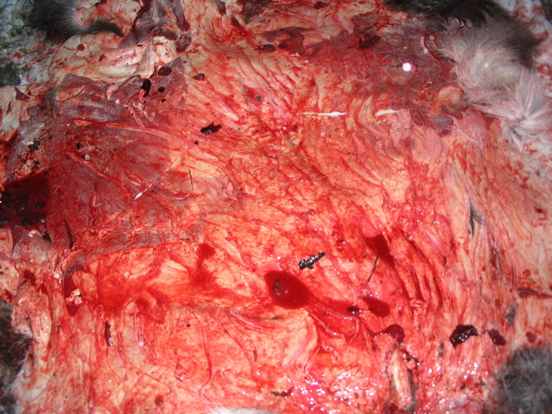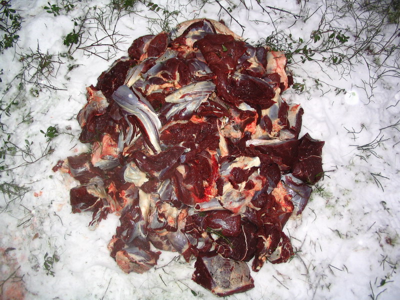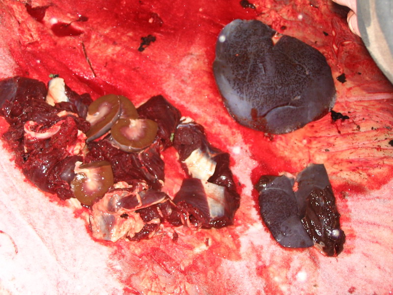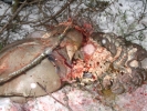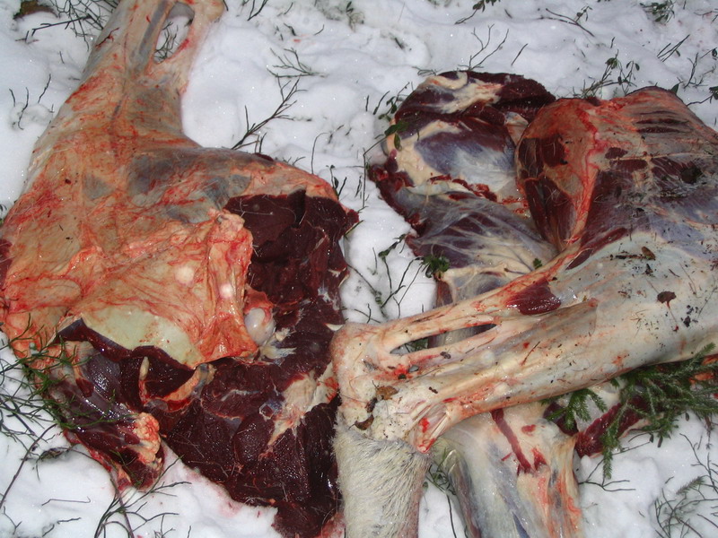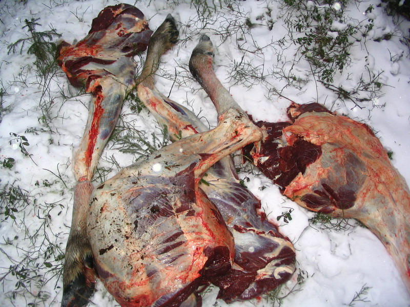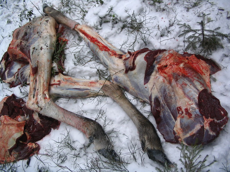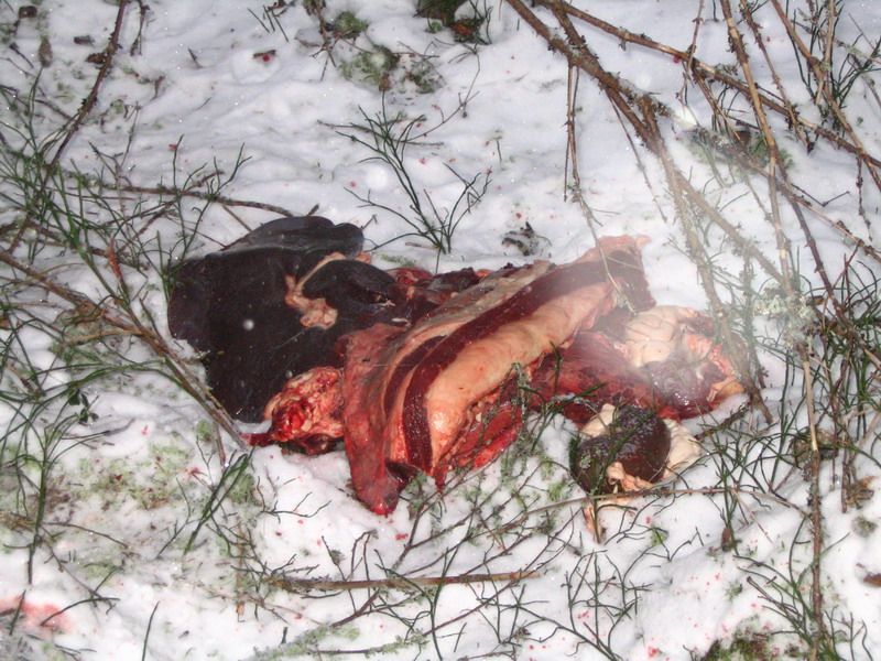 Судя по отдельным частям (кишки отдельно, ноги отдельно) валили из гранатомета. Гугугу.