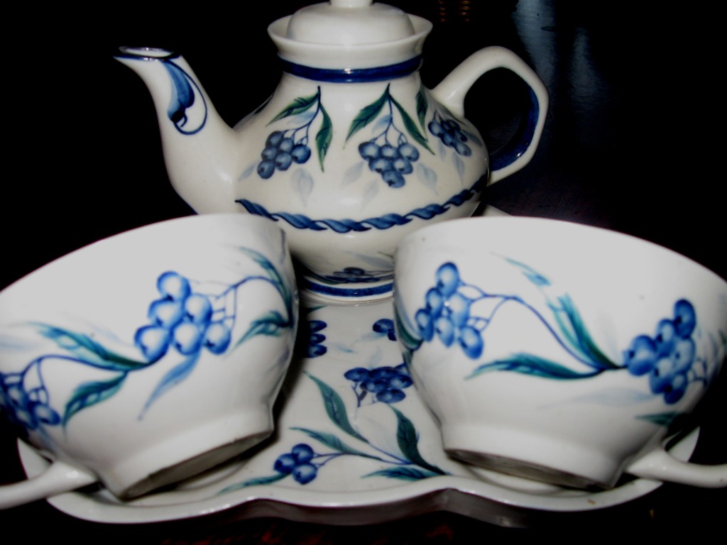 ..к сведенью. Это не гжель, это кобальтовая роспись. Кбальтом пишут только по ФАРФОРУ, с температурой обжига 1300 градусов. Майолика рядом не стоит.И это делалось на Урале.Выёбываться не собиралась, просили в гесте показать...что сделала.Эта мелачёвка которая задержалась дома...