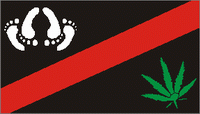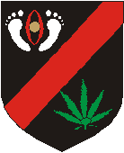 Это значить ножки падонщицы гвоздеприёмно раздвинуты, а промеж йими тоже гостеприёбно раздвинутые мочеполовые губы. Между губами - золотая манета, каторая сим волезирует падонский принцып: "без балабасов нехуй делать", а тагже напоминает извесную рускую пасловицу:"В пезде карабли золота тонут". А хули? Как будто не тонут? Ну и на конец листик марихуяны где был - там и есть. Должен однака предупредить, што если такой флаг вешать над судном или над входом там - ветер истреплет в пизду прежде всево правый нижний угол. Именно паэтому на нормальных флагах ничиво в этом угле нет (всякие дикарские флаги не в щёт, патаму как дикари нихууя не рубят ни в чом - в том чесле и во флагах). А з другой стороны не хуй ли с ним? Трёпаная марихуана тоже смотрица не въебенно. Как будто ейо кто-то абкусал... гы-гы-гы... каззёл там какой на пример...