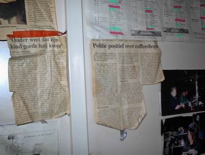 Вот фотография, сделал я её в кофешопе, в обычном привокзальном кофешопе, на этой фотографии нет ничего особеного, две статьи... «Полицыя думает о кофешопах позитивно» для тех кто в танке «Полицыя думает што кафешопы это песдато» и «Родители знают, их дети купят хороший гашишь» тоисть « Радаки фкрсе, што их чадоф не наябут и вместа гаша невъябенят терьяк» Терьяк , это опиат такой, чернушка бля, безвредная вопщим, но подсесть можно, лана хуй с ним, не про то речь просто...