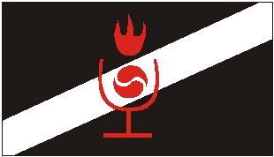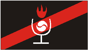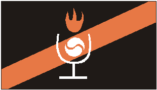 На канец - над знаком ёбли и рюмахой - пламя оганька - эт значить когда чё-нить раскуриваем, плюс огпнь, каторый получается в результате ёбли. Старый введический символ, каторый севодня сохранили только уебаны-манголы. Они йево называют "соёмбо". Но хуй с ними - с манголами. Не об йих речь тут. А ваще белый цвет на чорно-красном флаге - зайебца па-мойему: цвет вадяры, цвет спермы (значить жызни). От так он и выблядит в обкончательном виде: