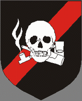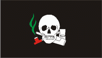 Ну а в более сложном вариянте - еблема с черепухой (помни о смерти и наслаждайся жызнью), а тагже перекрещивающимися трубкой-с-дурью (она же - трупка мира) и бутылянкой . А на конце трубки висить еще использованый гандон. Смысл - двоякий: либо радости падоначьей жызни% либо какк грицца:"вот што нас сгубит".