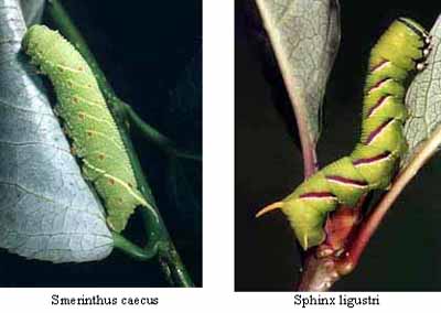 Гусиницы крупные яркие. У некатарых видаф при апаснасти из рога на жопе выдвигаюцца 2 ярких нити с ахуенна злавонным раздражающим запахам, и птица стремаецца такую дрянь жрать.