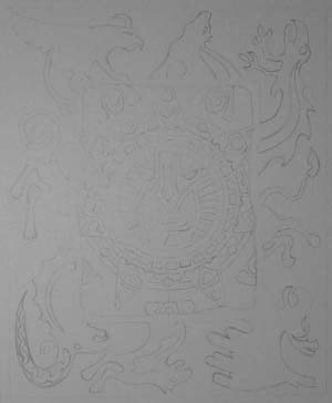 Так вот, на фотографиях – этапы рисования монстра. Процесс занял у меня ровно две недели, но это не потому что рисовать – трудно и долго, а потому что я медленный и ленивый.