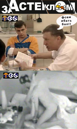 Так бля! Давно уже хочецца вспезднуть про неебательское тв-шоу "За стеклом". Тем более, что наконец-та эти уебки начали совокупляться! Праизошла вся эта поибень в ночь на 12.11.01.