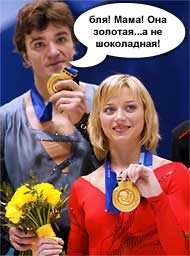 В результате они катались быстрейе всех. По результатам кароткой и произвольной программы на полшишки обошли канадцев - Джейми Сейл и Давида Пелетье, занявших второе место. Нехуя жрать допинги экспацкие сцуки! Зларадствуйем и желайем канаде захуячить на флаг канабис вместо клена - тогда дела со спортом у них могут реско пойти ф гору.