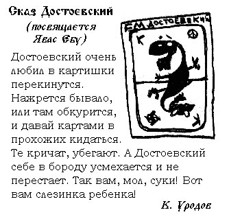 953367Я нах недалеко живу от места где Дастаевский в треньку продулся (во бля а еще классик).....