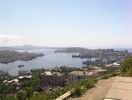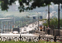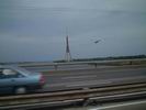 Вид с левого берега на правый, в т.ч. на мой мкр-н. А еще уже не очень новый мост (сейчас достраивают совсем новый) и заброшенная космосвязь Орбита (1967 г.р.).