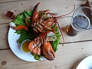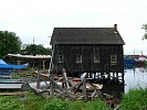 Население НС занимается, преимущественно, собирательством (53). Шучу, опять же. Вот такой веселый я сегодня. Это конкретный дедок собирает землянику – а вовсе не готовится к совокуплению с домашними животными, как некоторые могли бы подумать. Мы там тоже собирали. Героическая история поисков пропитания местным народом отражена в легендах, поговорках и музейных документах. Исторически, все там крутилось вокруг моря и, в меньшей степени, сельского хозяйства. Так что не удивителен ностальгический плакат In Cod We Trust (54, «в треску мы верим», cp. In God We Trust) и памятник треске в местном музее (55). Сейчас, впрочем, на месте большее значение имеют лобстеры, которых тут же скармливают туристам. Конкретно, вот нам (56, снимок исторический - это было мое последнее пиво, я тогда еще не знал, что мне пиво пить нельзя). Лобстеров жыстоко заманивают вот в такие ловушки (57), которые сбрасывают вот с таких шаланд (58), а потом собирают (59). Жизнь в порту кипит, и кораблики двигаются, и даже что-то типа колхозной верфи действует, строит новые шаланды (60-66). Но и кипит эта жизнь в местном расслабленном стиле. На вход в верфь, этот флагман местной промышленности, можно повесить табличку «Ушел порыбачить» (65), и ничо, никто не удивляется. А если вы вдруг приплыли сюда из-за границы, таможня вам сурово напоминает, что вы должны им ПОЗВОНИТЬ (66). Конечно, когда столько воды вокруг, много возможностей развлечься, и для обеспеченных (67), и для необеспеченных (68). Но таких возможностей заработать как во времена американского сухого закона, уже нет и не предвидится. Те героические времена вспоминают с гордостью и ностальгией. Именно НС спасала Нью-Йорк в те тяжелые времена, небесплатно, конечно. Этих людей тогда называли Rum Runners, они пользовались большим уважением и тогда и после. Их деятельности посвящена специальная экспозиция местного музея (69, 70). Там, в частности, вывешен специальный декрет президента Рузвельта (70) о помиловании одного такого капитана, которого захомутали по старому ордеру через десять лет после того как сухой закон был отменен. НС встала на рога и добилась освобождения подчистую – с мотивировкой, что этот человек слишком нужен ее народу. Вот пример как надо своих защищать.
