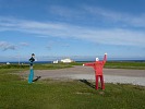 Искусства не слишком развиты в НС, оттого попадающиеся иногда артефакты способны вогнать в ступор даже привычного к постмодернизму путешественника. Вот едешь-едешь по дороге и замечаешь, что тебя приветствуют с обочины (71), по внимательном рассмотрении, типа огородные чучела (71-76). Но это ладно. Мы вечером едва не съехали в кювет, когда фары неожиданно осветили большой придорожный портрет Лизы Питеркиной (77).