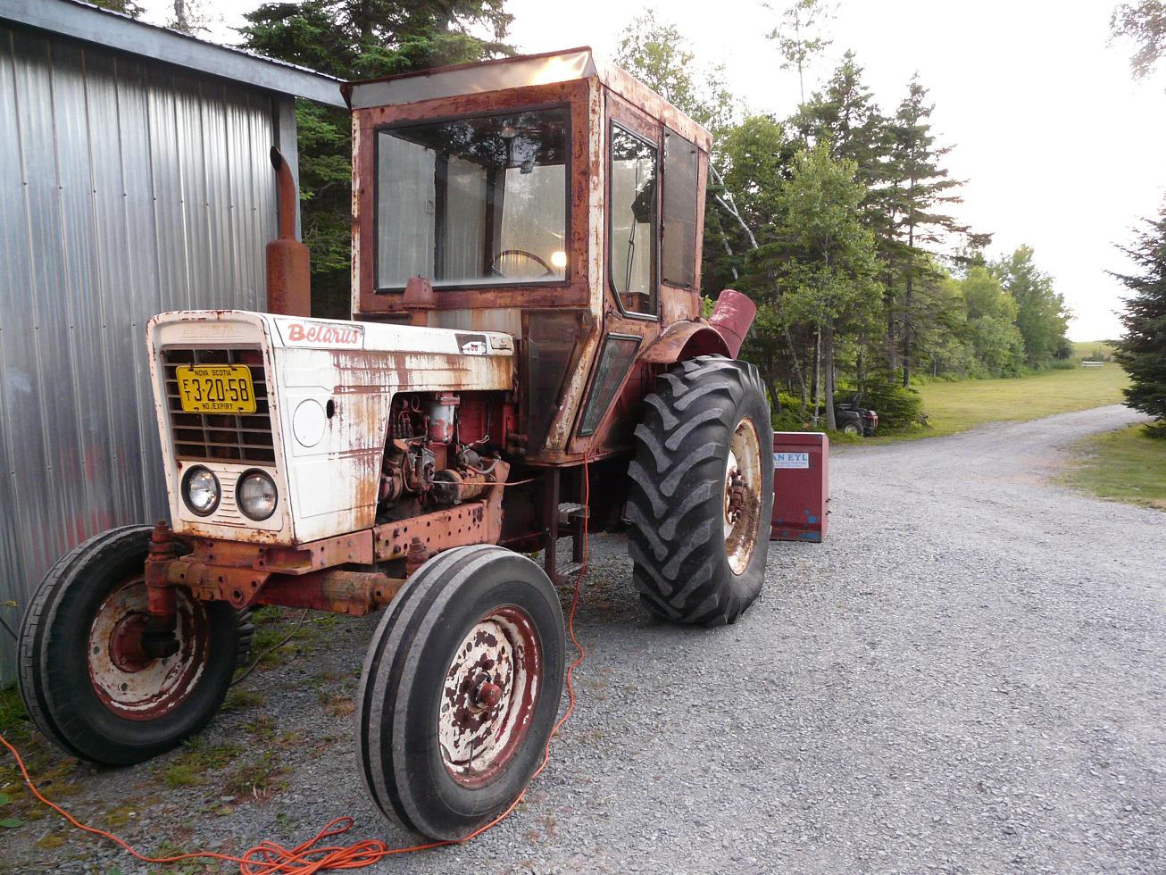 О, да, чуть не забыл. Вот смотрите. Мы у бухты жили в палатке, в кампе, где регулярно идут фестивали народной песни (т.е. там эти музыканты болтаются постоянно, и каждый вечер поддача с песнями большой компанией – там такие дуэли пьяных гитаристов были, застрелиццо). И вот что я там обнаружил: 110, 111. Я думал, типа памятник империи. Ну, расспросил хозяина. Он говорит, эти трактора при СССР поставляли Канаде в оплату за зерно. Так этот дедушка советского тракторостроения (1973) еще фурычит! С его помощью зимой сгребают снег. Там оригинальный мотор и даже шины. Вот, блин. Совецкий Союз, который мы потеряли (ТМ). Даже не знаешь, что сказать.