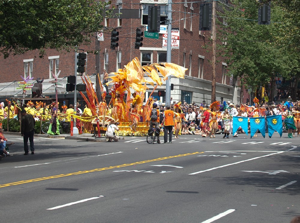 Приняв на грудь еще, они решили не ограничиваться любовью к неграм, а полюбить всех, самых разных, друг на друга не похожих. С тех пор расцвели во Фремонте хиппи, язычники, гринписы и прочие приколисты со всякими диковинные промыслами, а район стал называть себя "Народной республикой Фремонт", "республикой искусств" и центром контркультуры.