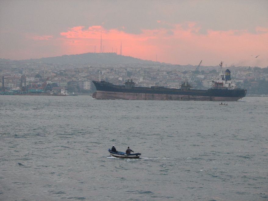 Невысокие анатолийские берега вылезут из горизонта, рыбацкие суденышки прыснут в сторону, на входе в Босфор густо запахнет хвоей, лоцманский катер ловко подойдет к штормтрапу,  потянутся  слева старые орудийные капониры, скучающий солдат с автоматом при них,  причальчики,  домишки, еще лес, но вот зданий все больше, а аромат хвои сменит запах города.
