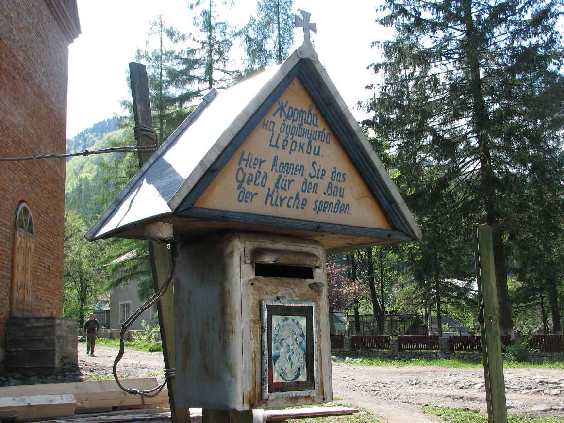 Не удивляйтесь первому немецкому названию, село основано при австро-венгерской империи. Тут часто рассекали короли и графы с целью поохотится. Потом рассмотрели буковые леса и переселили из Австрии лесников, лесорубов и прочих плотников. Переселяли льготами, не насильно. О глубоких бундесских корнях говорят и флаги (Фото 3) и чистые улицы с мощеными тротуарами (Фото 4) и многочисленные изображения Пресвятой Девы и Спасителя у домов (Фото5) и костел, в котором по очереди служат римо-католики и греко-католики (Фото 7, 8).