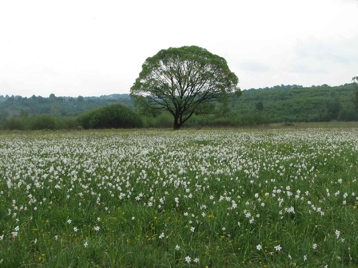 Единственная в мире популяция дикого узколистого нарцисса цветет раз в году, с 1 по 21 мая. Площадь заповедника, расположенного в Хустско-Солотвинской долине Закарпатской области, составляет 257 га, из них нарциссовые поляны занимают 170 га. Такие растения есть лишь на Балканах и в Альпах, но на высоте уже 2 тыс. м.