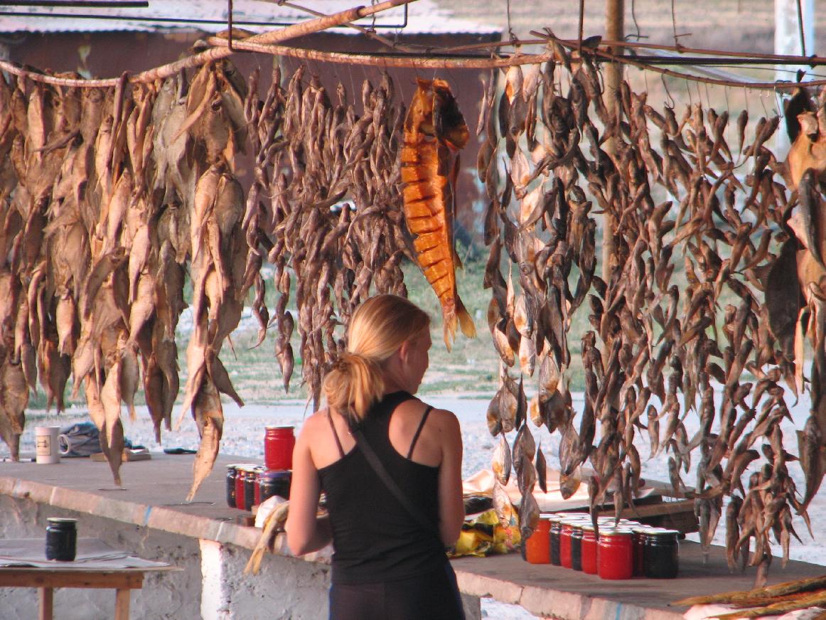 Раньше пацаны, надрываясь, предъявляли метровых осетров и севрюг, а если зайти в нужные ворота, можно было купить и камбалу, размером с детскую ванночку. Сейчас «и мы не те, и суки постарели». Но по-прежнему толкают икру. Что особенно умиляет - красную икру. Нерестилища красной икры на Чонгаре? Ну, это вообще пиздец какой то!