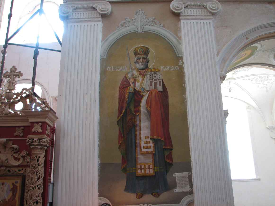 В дикие девяностые годы, зимой, соблазнившись прекрасным видом, я заехал в этот храм. Царила ужасающая разруха. На заборе проглядывали пионерские звезды, в самом соборе несколько монахов зашивали окна и выносили кучи мусора. Под куполом выл ветер, и снег сыпался на обнаженные головы монахов.