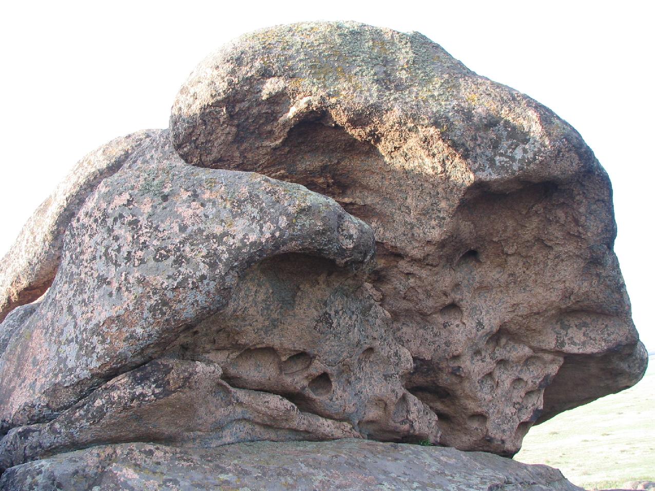 Каменная гряда, поросшая сухим лишайником, как будто раскрашена гениальным художником-импрессионистом: сквозь пятна бледно-зеленого и темно-желтого тепло светятся вкрапления розового и темно-красного гранита, образуя таинственные начертания. Иногда линии напоминают извилины человеческого мозга – в них мудрость тысячелетий. Воздух степи пропитан ароматом цветов и возникает чувство зависти к скифам, некогда обитавшим здесь “как у себя дома”.