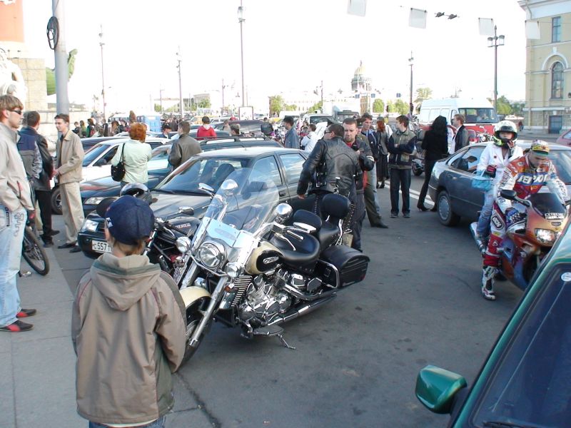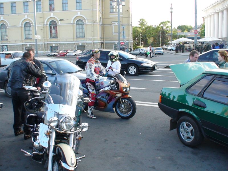 Я канешна ни спицыалист но мне фсигда казалось что байкеры не на спортивных мотоцыклаг, в цветастых кожанках не гоняют..... Хотя пару зачетных байков там было.