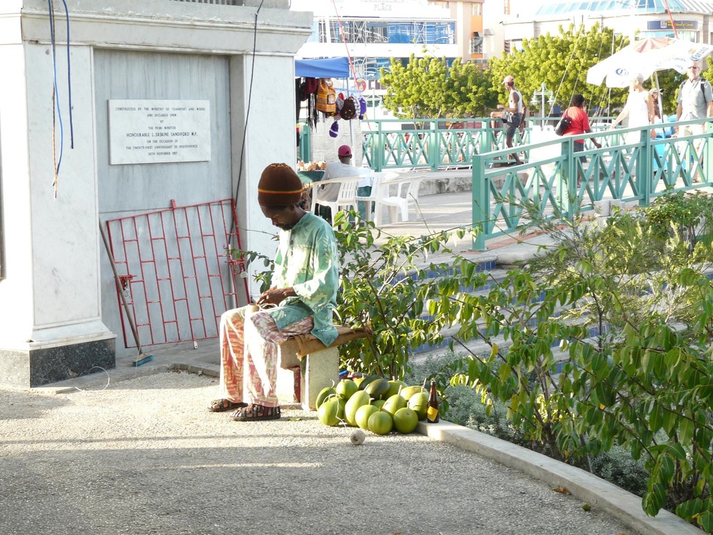 14-23. Но, в отличие от на вид похожих папашек в Африке, Его Высокопревосходительство таки оставил жителям подведомственной страны - кто бы мог подумать - возможность хоть скромного, но не позорного существования. Тут несколько картинок их жизни. Вот мужик культурно выпил и отдыхает. В трех минутах ходу от памятника Его Высокопревосходительству. Это как бы у нас на Красной площади. И никого, мягко говоря, не волнует. Кто хочет работать - работает (15), остальные продают и покупают, что особенно уместно под Рождество (16-21). Кстати, Dis&Dat - это This-and-That, т.е. "то и это". И тем торгуют, и этим, блин. На базаре меня привел в ступор чудесный плакат (22). Прочитали, да? Непонятно, почему я там от смеха чуть не лег прямо на гнилые ошметки? Это такая дыра, такая консервативная провинция, что до них изменения в языке доходят с сильным опозданием. У них barebacks - это все еще те, кто зашел без рубашки, в то время как во всем цивилизованном мире это слово давно означает ипущихся без гандона. Кстати на эту тему есть еще фотка (23). Много загадок таит загадочный остров.