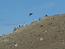 А вот, кстати, и пингвины (41). За ними внимательно наблюдает другой хыщник, более благородного вида; писатель Горький такого бы радостно воспел (42).