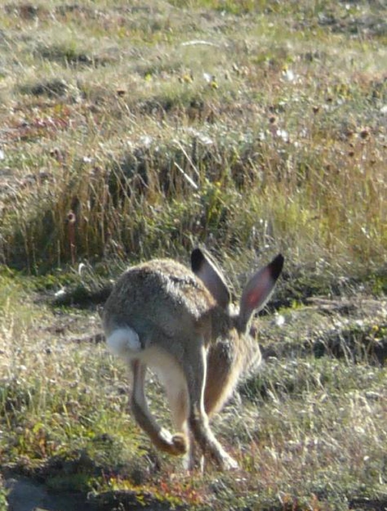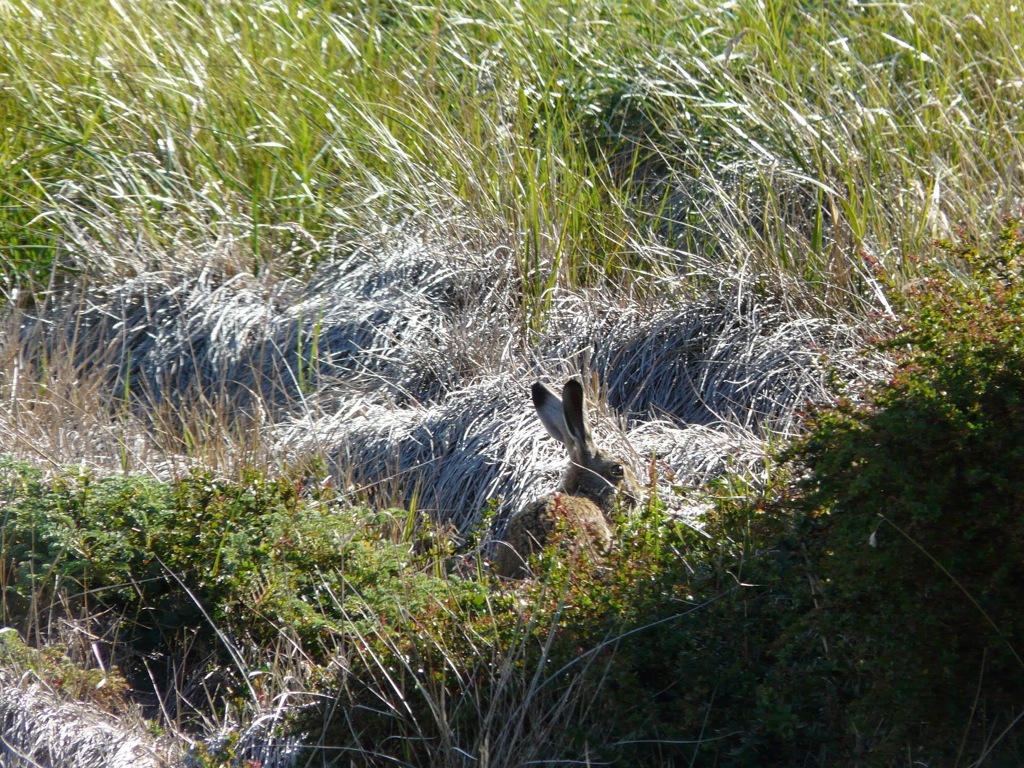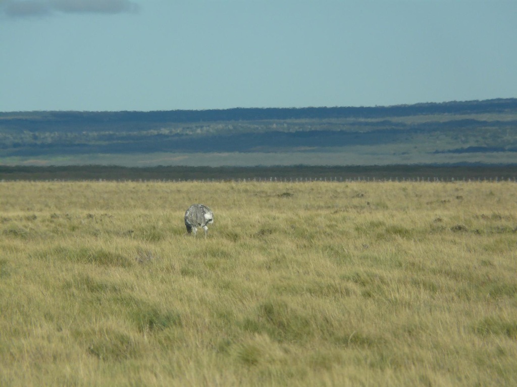 В бухте Отвай пингвинов поменьше; в середине марта там остались типа отставшие в сексуальном развитии. Но это компенсируется живописным окружением и присутствием других жывотных. Все ж таки там оно больше соответствует обычным представлениям о прериях Патагонии (38). На этой фоте нифига не пингвин, кстате, а загадочная жопа местного страуса нанду. Их есть там тоже. А вот, кстати, и местное зайко (39, 40).