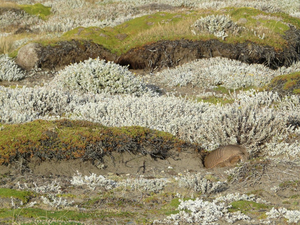 А вот и еще один сожитель (в хорошем смысле) пингвинов показался (50). И таки нет, это не лобковая вошь-переросток. Это броненосец, умело отрастивший рыжую редкую шерсть поверх панциря. Вон в норку полез (51).