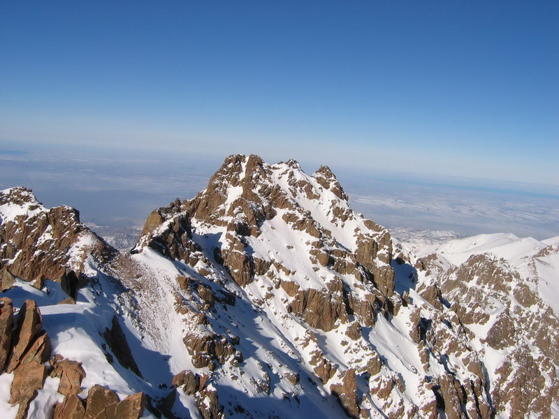 004 – пик Абая, внизу Алма-Ата в лёгкой дымке, вид с пика Амангельды, декабрь