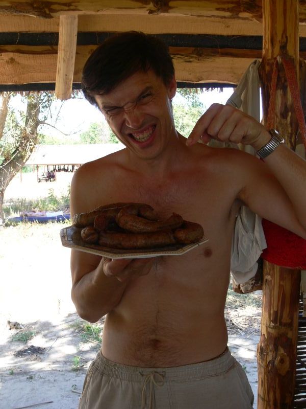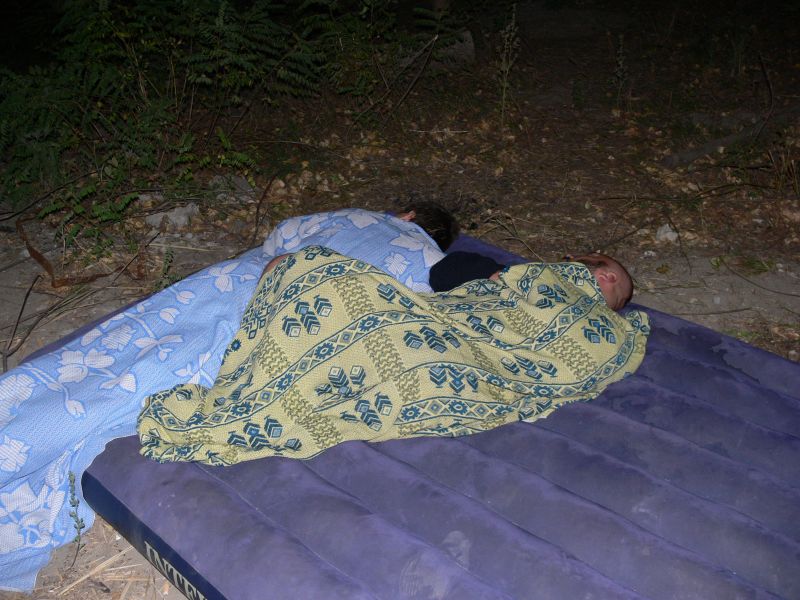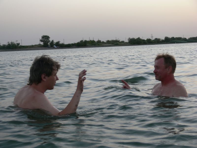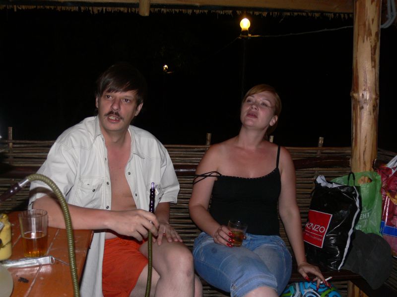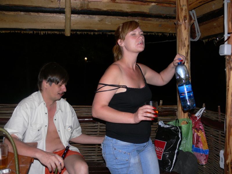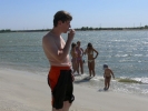 В приципе, остров работает до 23 часов. Но Казак (ВЧ) позаботился, чтобы нас оставили с ночевкой. Веселье разгоралась. Уже когда стемнело, дочка Гарика пошла купацца и обнаружила вылезающее из воды существо. Ихтиандр? Несси? Не фига! Это был строитель, отмечавший профессиональный праздник. Вскоре вместе с ним к нашему шабашу приперлись еще трое строителей и бутылка вотки. Мотивы рыцарей мастерка изыском не блистали: у нас были дамы, а у строителей только прораб. А с прорабом не забалуешь...