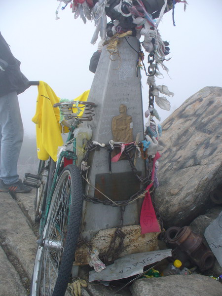 Рис9. Памятник разбившемуся на вершине вертолету. Но возводили наверно по обкурке. А велосипед вообще хуй знает к чему( и какой мудак его пер на такую высоту?)
