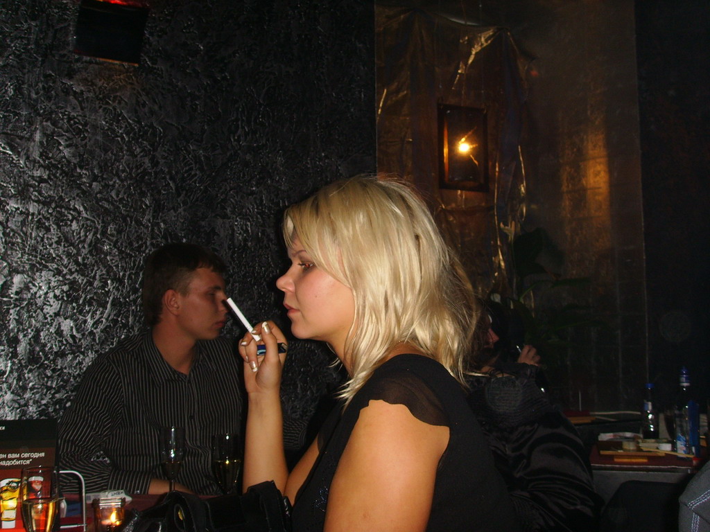 Я слехка насторожился когда Робат ответсвенно заявил: "Ща я вас отвезу в один паб.....Там можно срать, ссать арать блевать и ваще......". Честно говоря я имел в голове чоткий план - затащщить к себе в кровать какую нить особь противоположного пола с целью иммитации процесса размножнения на безвозмездной основе, но прецтавивь описанные Робатом возможожности, сильно засомневался в том что план мой вообще выполним. Приезжаем значит.....Как обычно, заведение оказалось чуть поменьше той хатки на Пушкинской 12, но суть не в этом. Смотрю, в самом дальнем углу сидит компания из девчушек..Девачки конечно - плотный середнячок, но к тому моменту моя коряга начала дымится и местами источать искры, пугая окружающих лёхким потрескиванием.