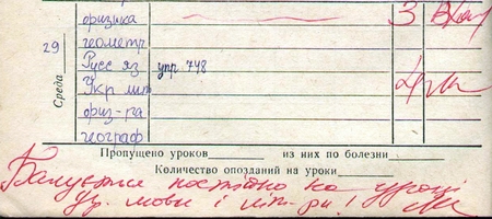 Посмеялась и вспомнила, как мне в 5 классе в дневнике записали неуд. по поведению