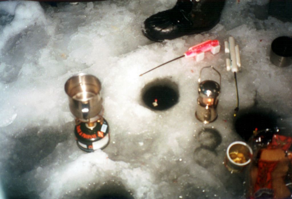 Прикормка: мотыль с сухарями. Глубина-жерлицы: 8 метроф, удочки: 6-7 метроф.